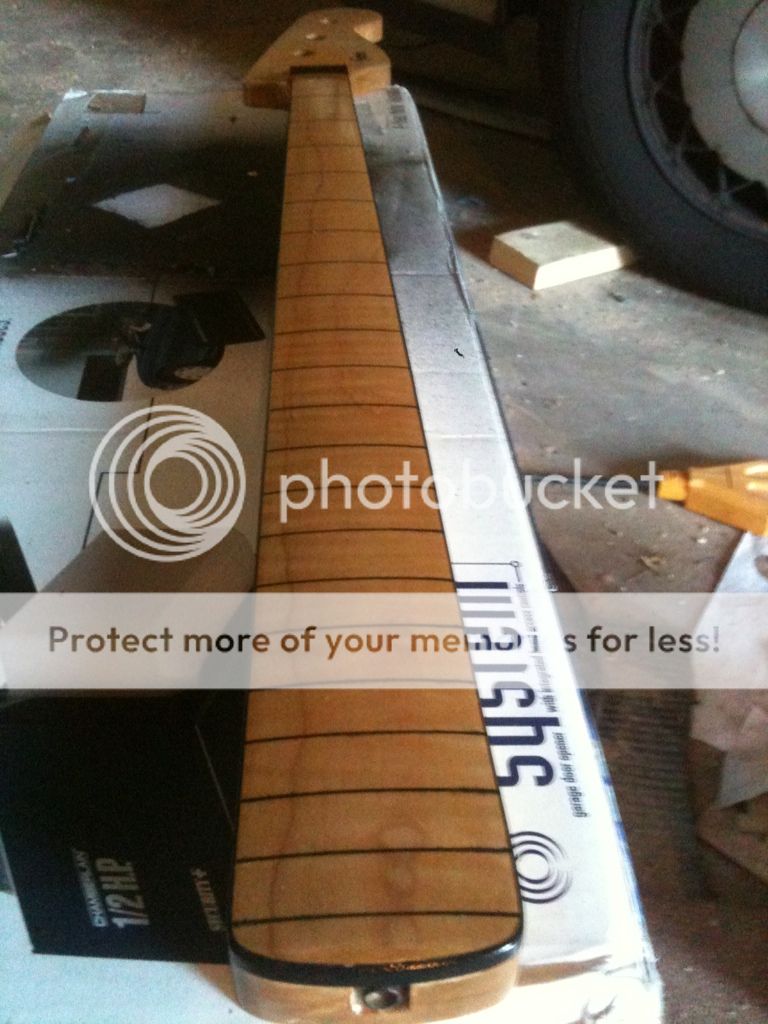 I bought a new old stock Ibanez neck I found on eBay, along with a dogear P-90. I filled in the upper part of the neck pickup cavity so that a pickguard would cover it.
